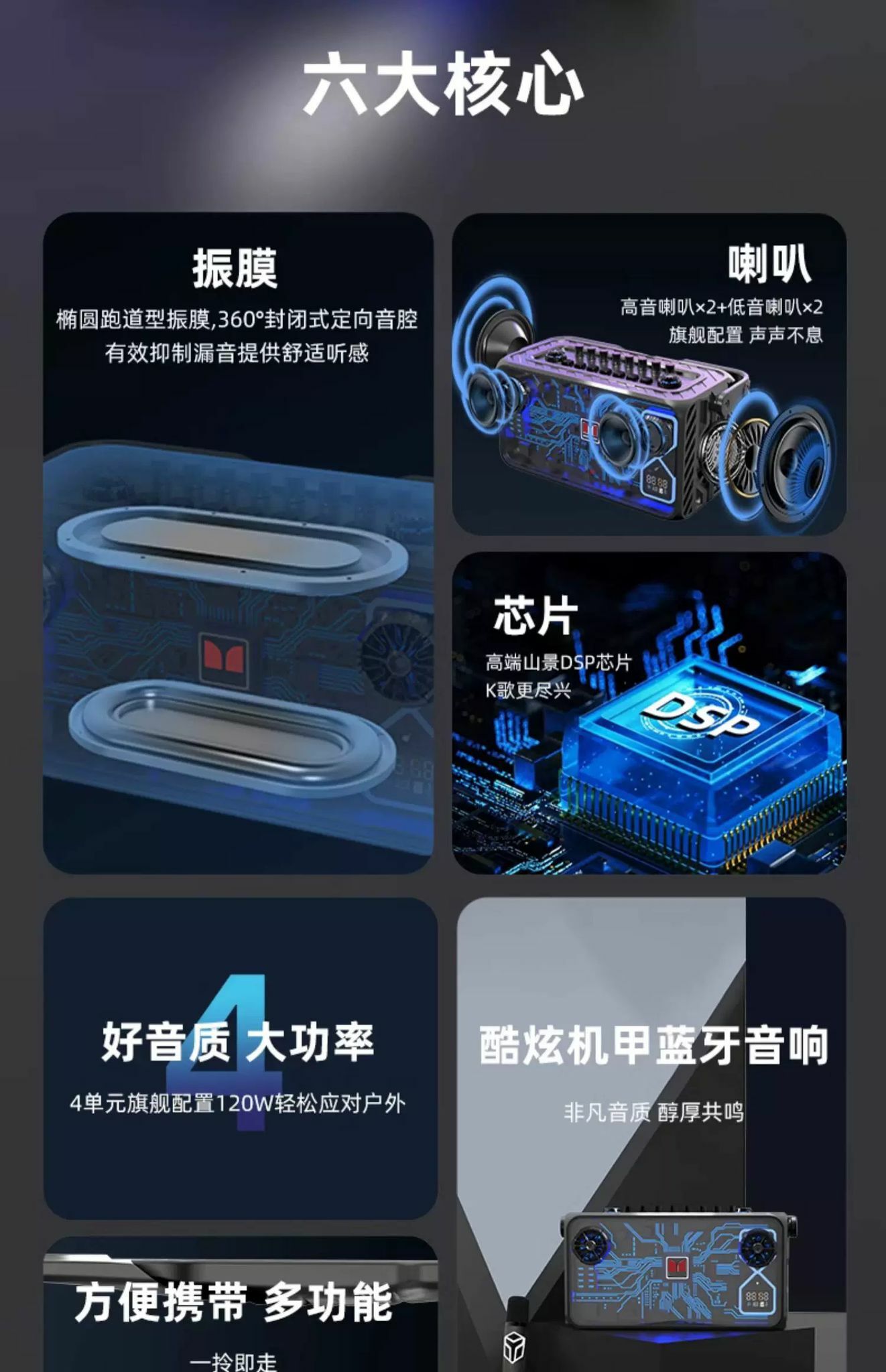 機甲電競風,個性酷造型,時尚炫酷舞動彩燈可用於休閒娛樂K歌、 直播、 公司用擴音