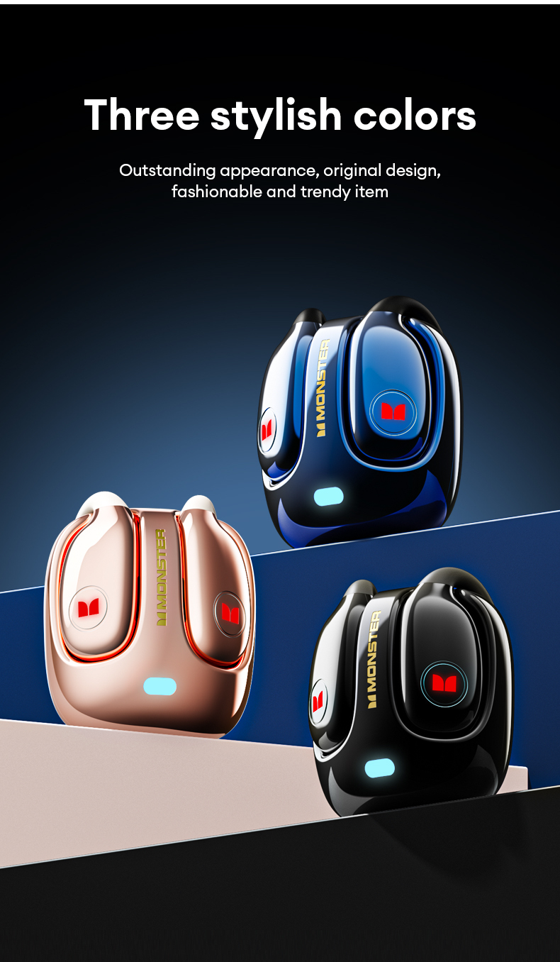 開放式掛耳設計不入耳更舒適全向鎖音減少漏音情況 強勁低音 360度全景音耳托抗扭曲記憶鈦絲長效使用大動圈複合振膜還原立體音質遊戲模式低延遲傳輸 音樂模式高品質播放