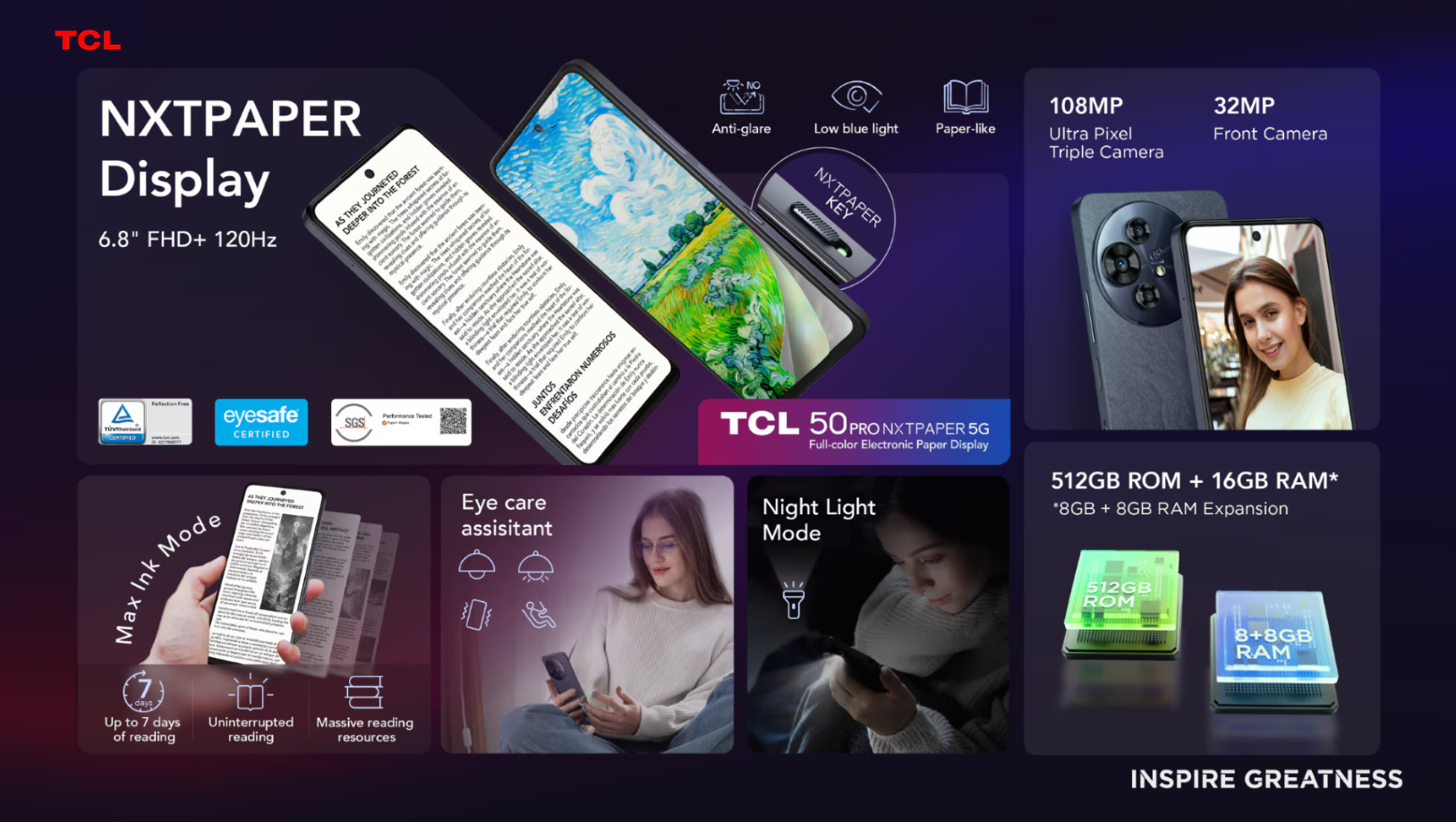 6.8" 120Hz FHD+ NXTPAPER顯示屏
