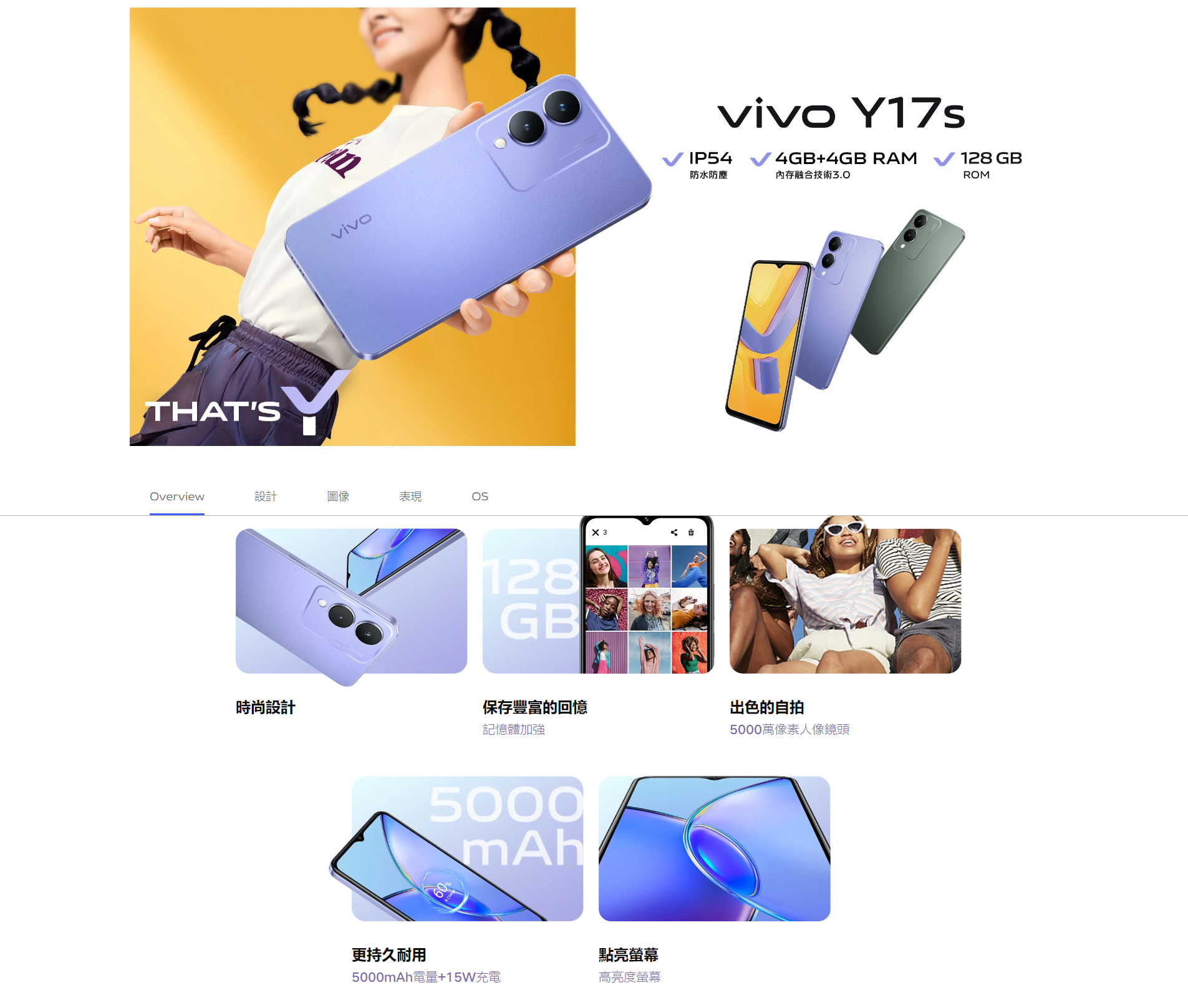 IP54 防水防塵︳4GB+4GB RAM 記憶體融合技術3.0|128GB ROM︳50 MP高清主鏡頭︳5000mAh大電量︳簡易模式介面